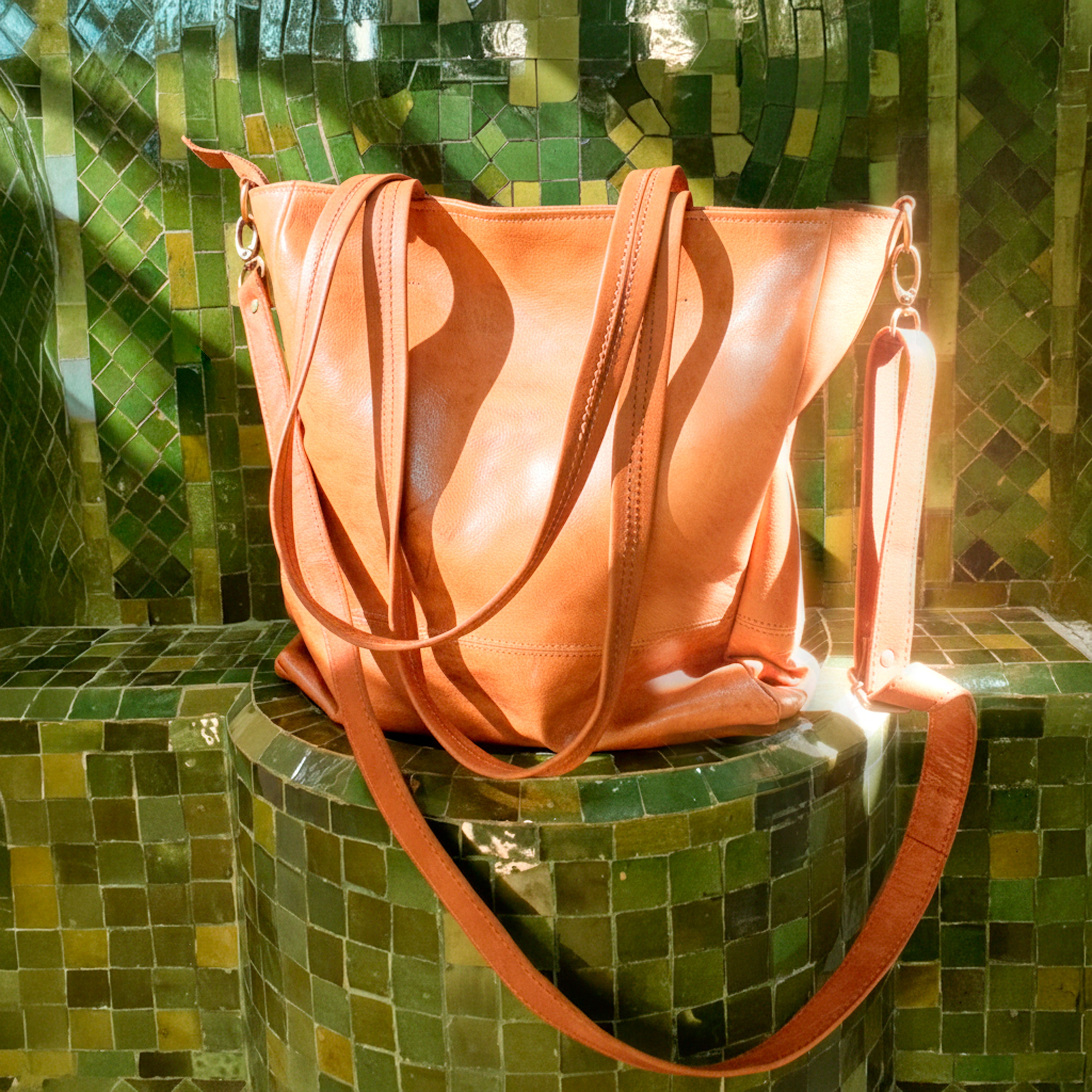 Bolso de cuero 100% vacuno diseñado y fabricado en los grandes  talleres de guarnicionería en Marruecos. Un estilo duradero para toda la vida. Con diseño y acabado premium.