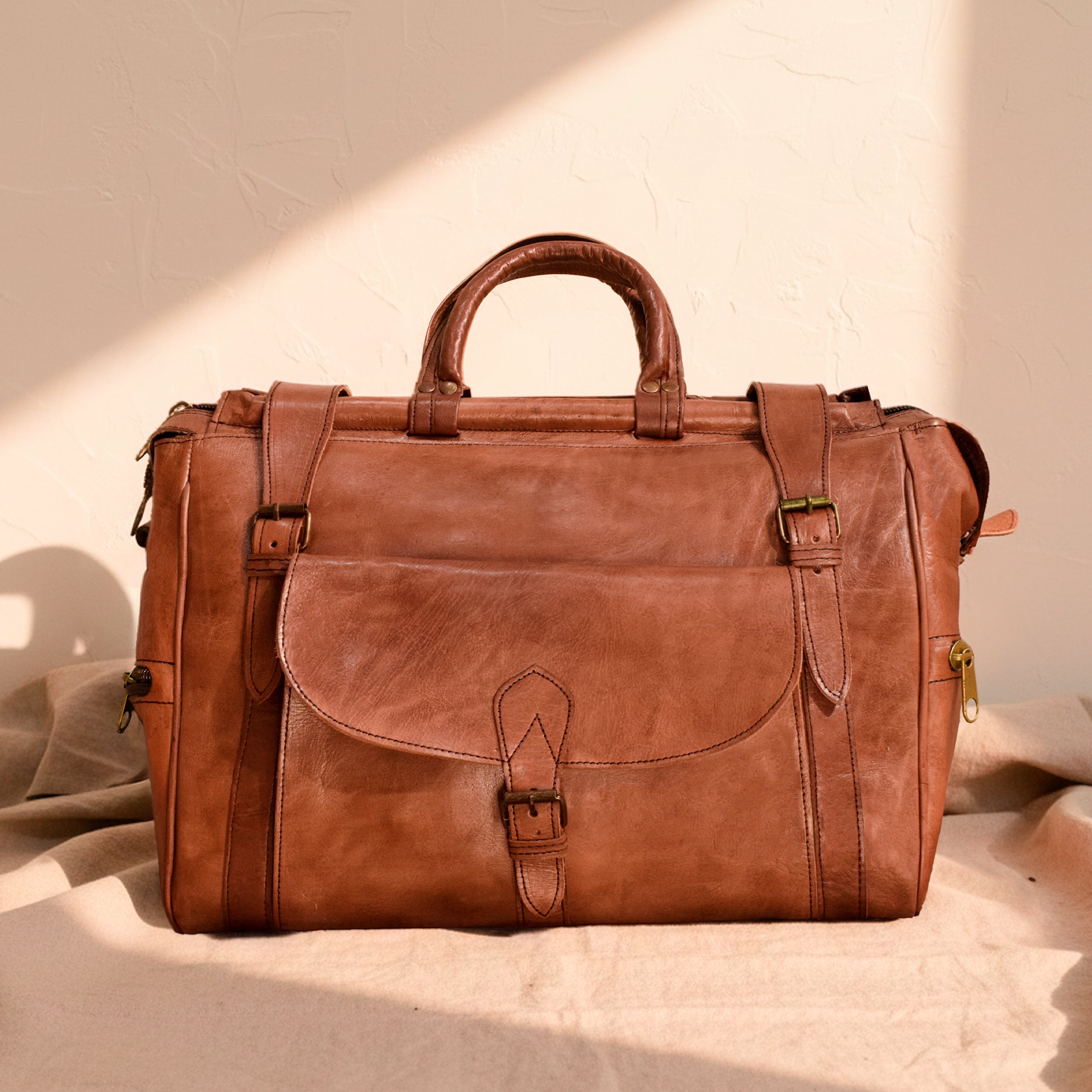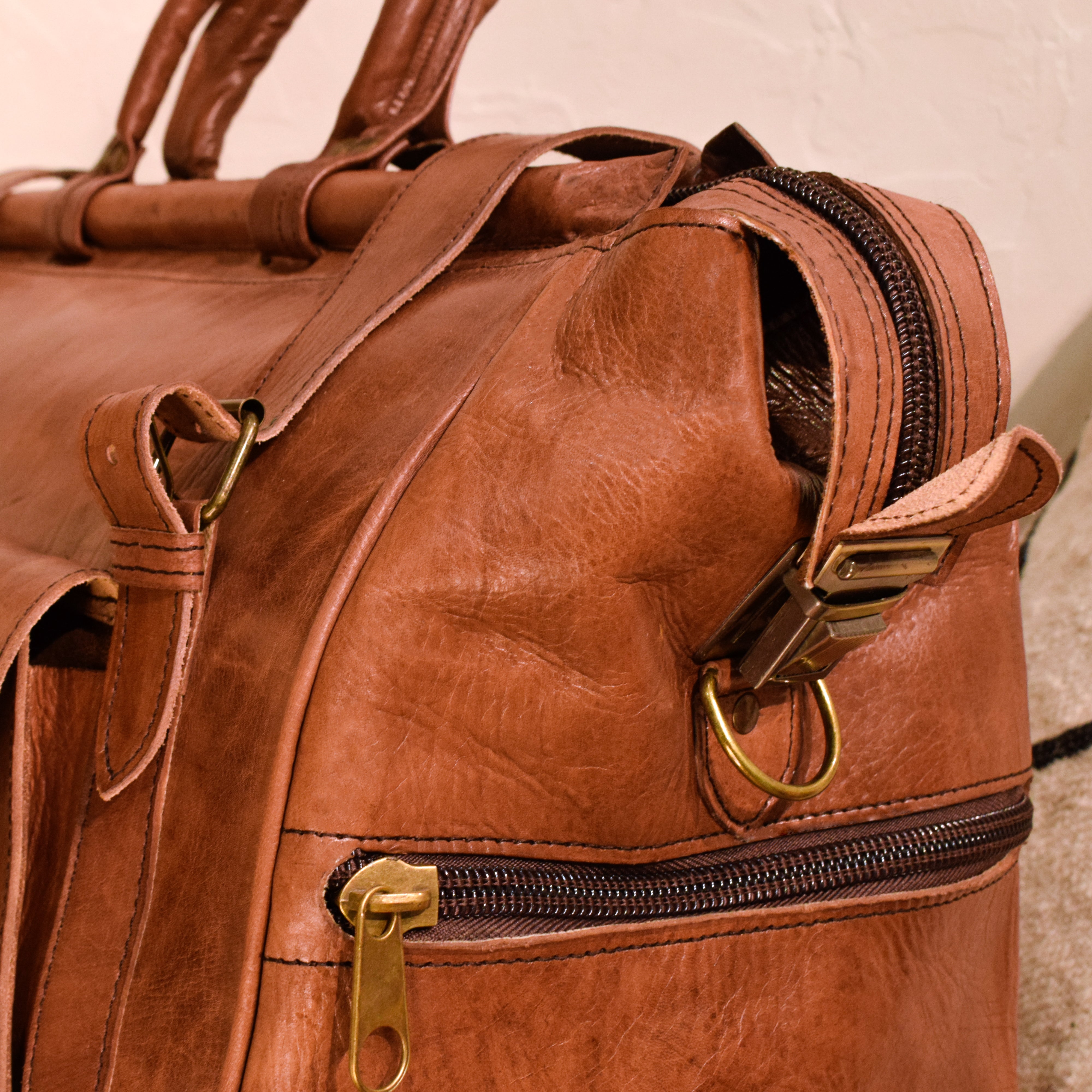 Bolso de cuero 100% vacuno diseñado y fabricado en los grandes  talleres de guarnicionería en Marruecos. Un estilo duradero para toda la vida. Con diseño y acabado premium.